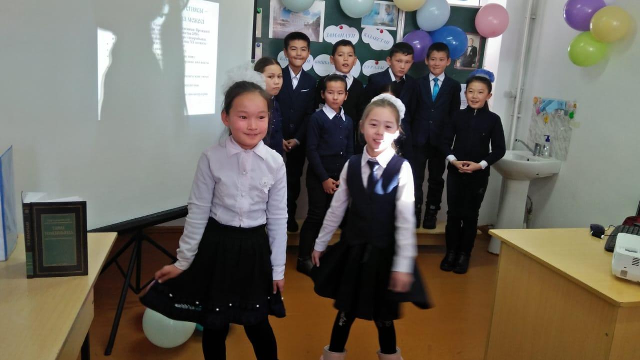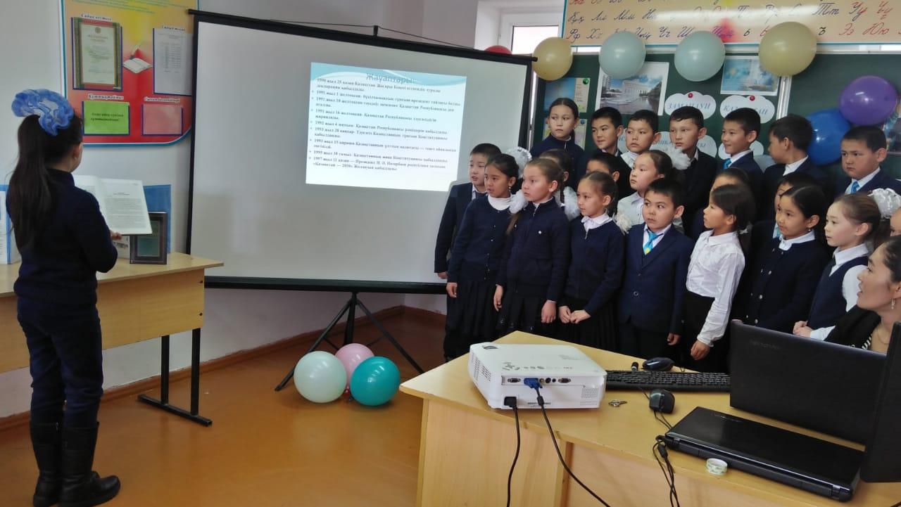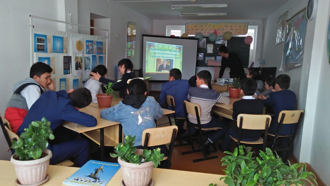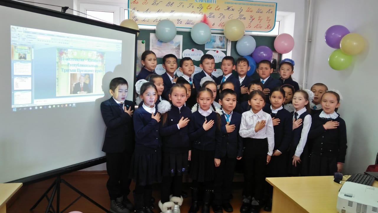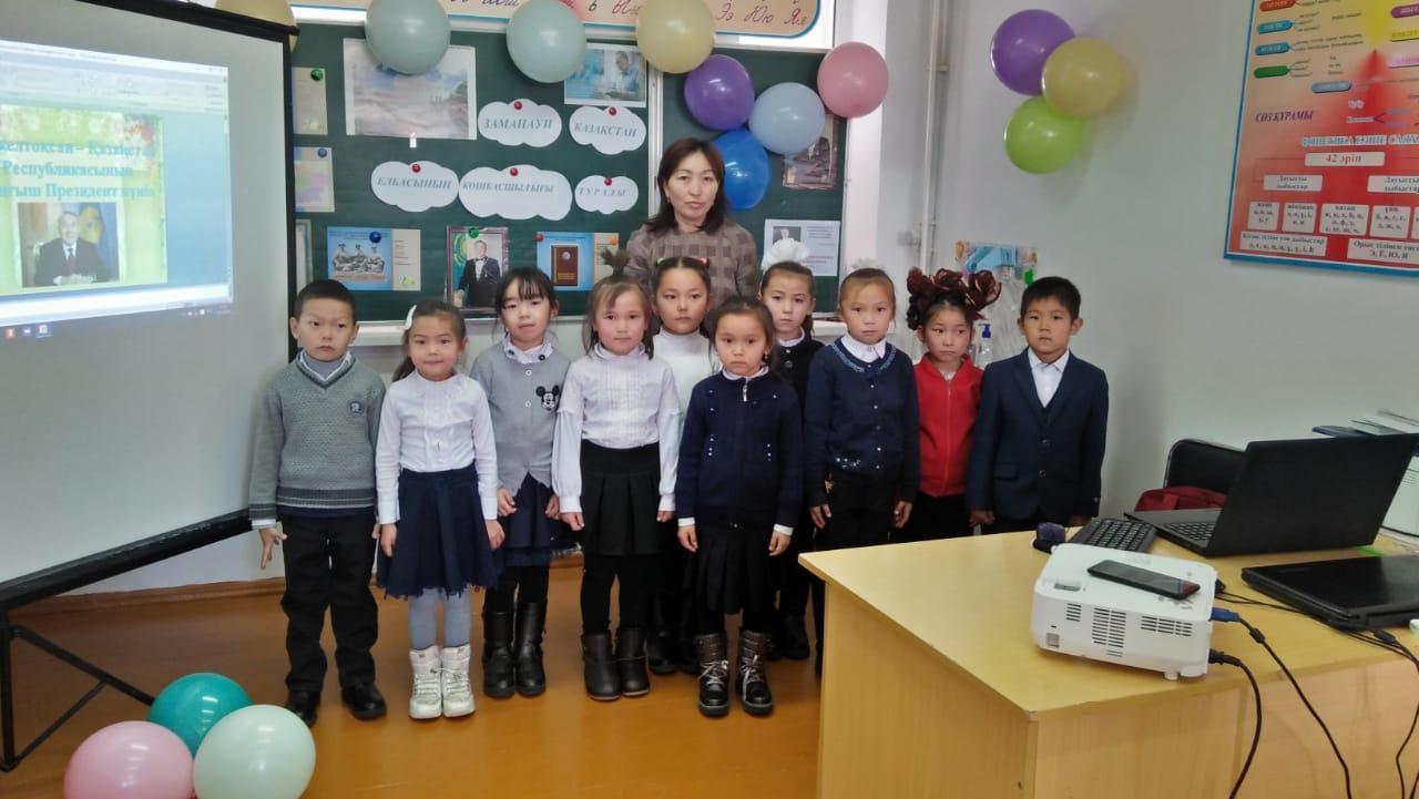 1-желтоқсан "Тұңғыш The president" күніне орай мектептің тарих пән мұғалімі Ақынов Байдыбек 8-9 сынып оқушыларымен ашық сабақ, 1-4 сынып оқушыларымен сынып жетекшілері А.Хавдолдой, Т.Д.Туликбаева, Б.Ы.Алпысбаева, Н.Адилбек және МАД тобы оқушыларымен сынып жетекшісі Тінібаева Айжан тәрбие сағаттарын өткізді.